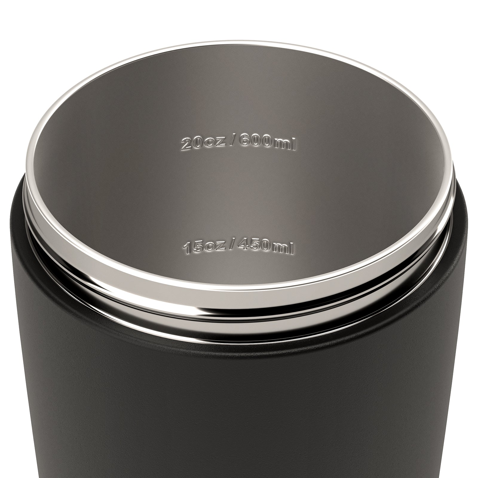 大容量750ml(メモリ600ml)のメモリ付きステンレスシェイカー。氷や粉末が入れやすいよう、約8cmのボトル口を採用しています。
